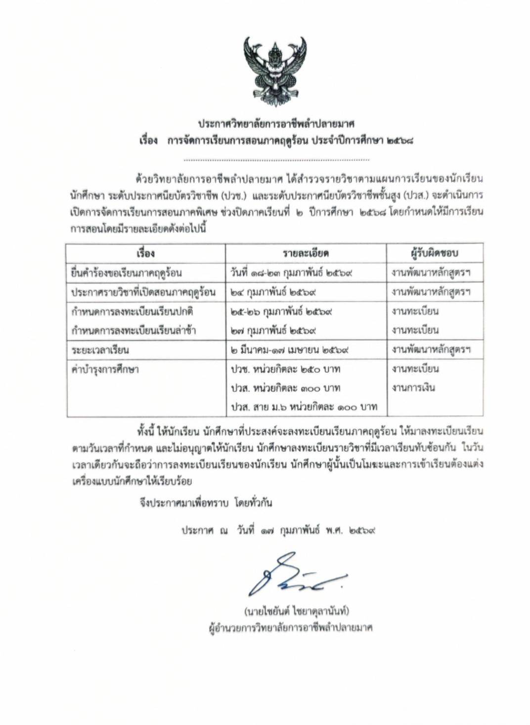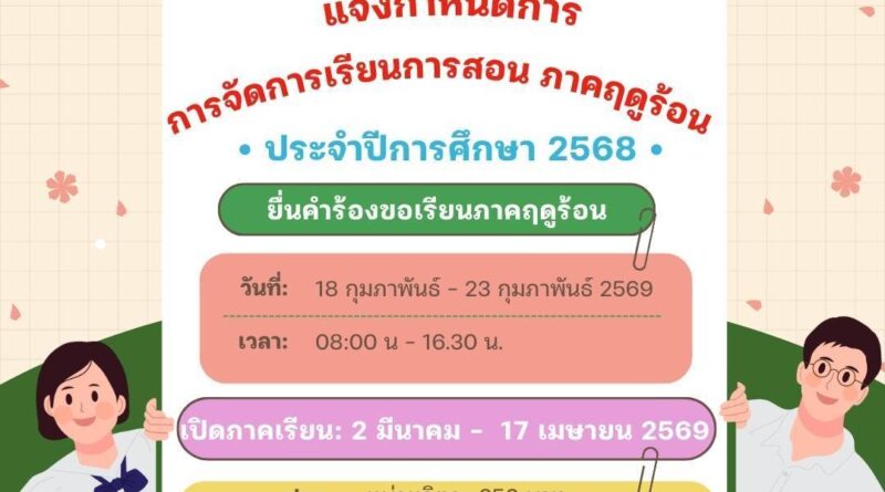 • ประกาศรายวิชาภาคเรียนฤดูร้อน ประจำปีการศึกษา 2568