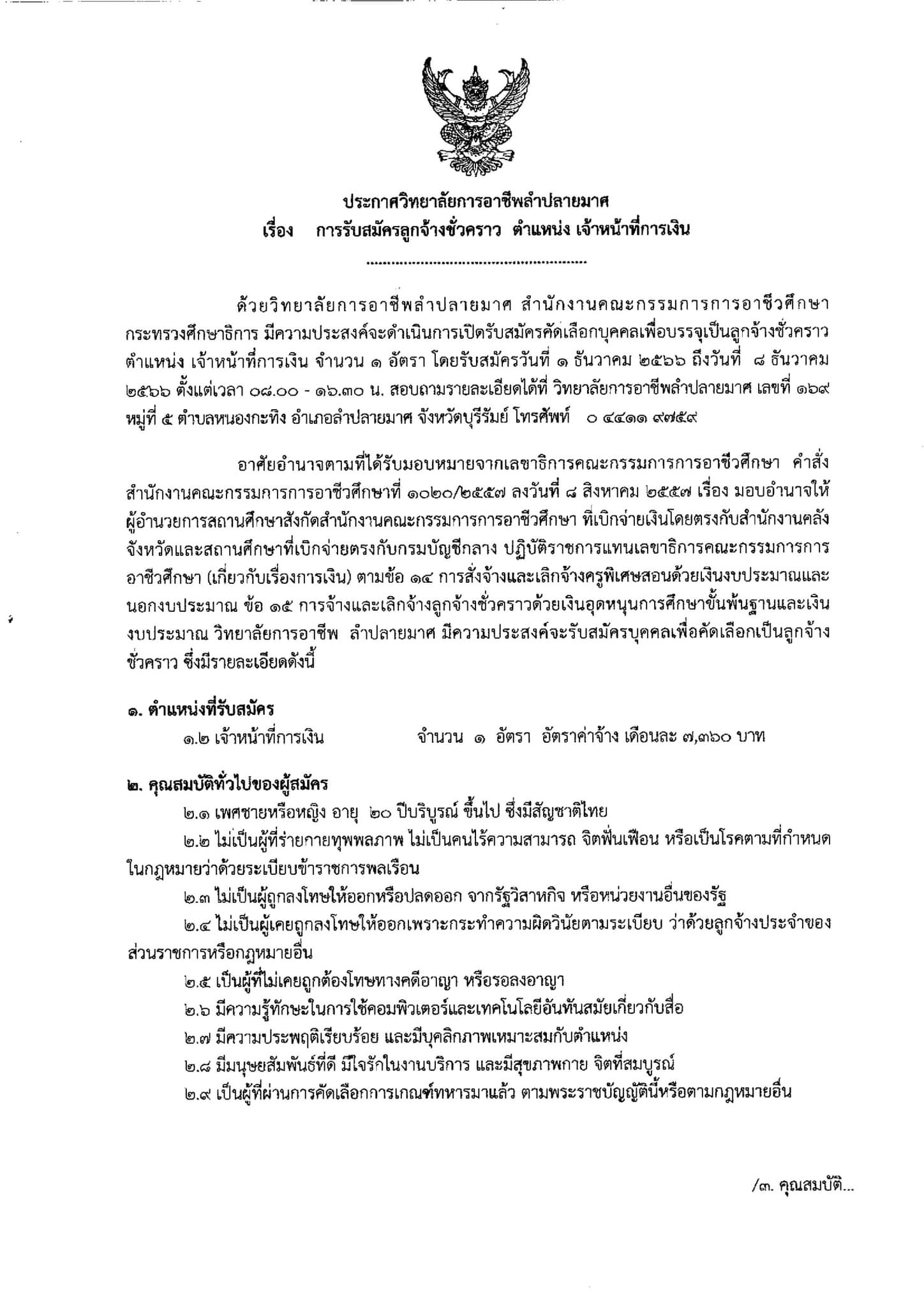ประกาศรับสมัครลูกจ้างชั่วคราว ตำแหน่ง เจ้าหน้าที่การเงิน 1 อัตรา ตั้งแต่วันที่ 1-8 ธันวาคม 2566