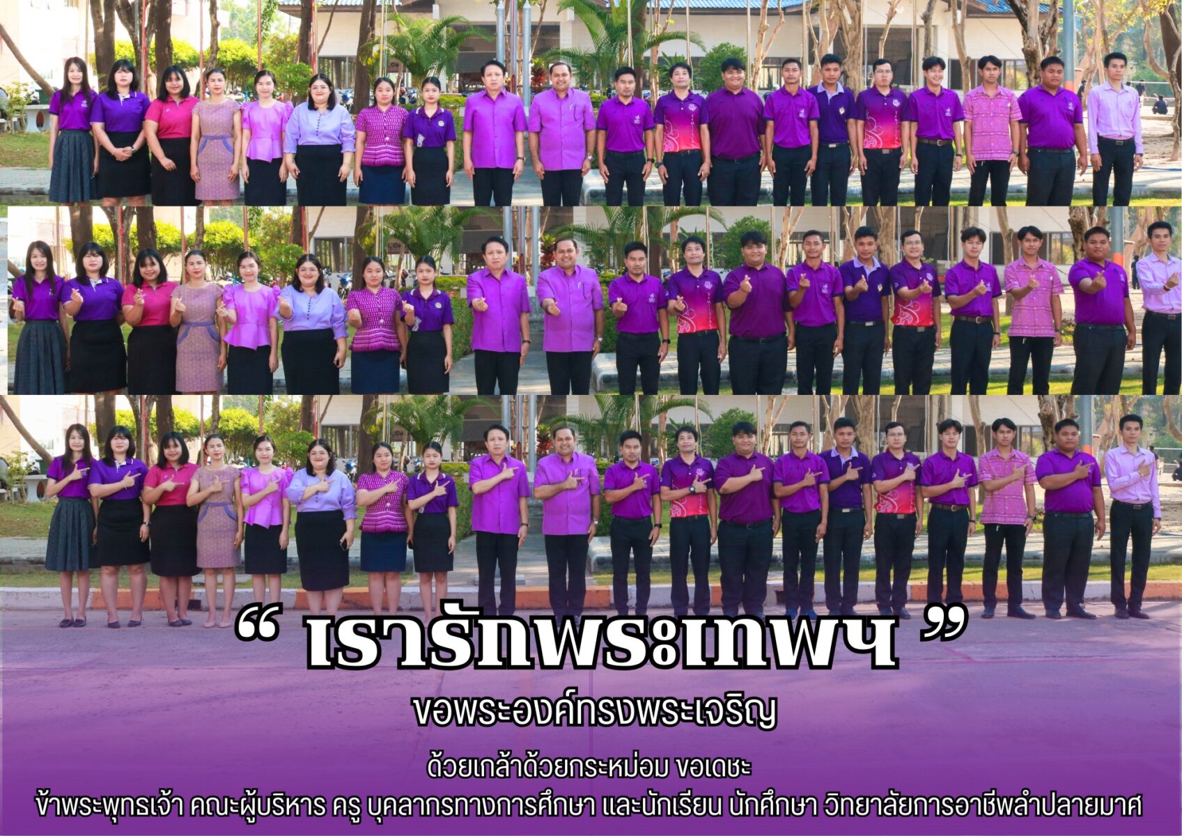ข้าพระพุทธเจ้า คณะผู้บริหาร ครู บุคลากรทางการศึกษา และนักเรียน นักศึกษา วิทยาลัยการอาชีพลำปลายมาศ