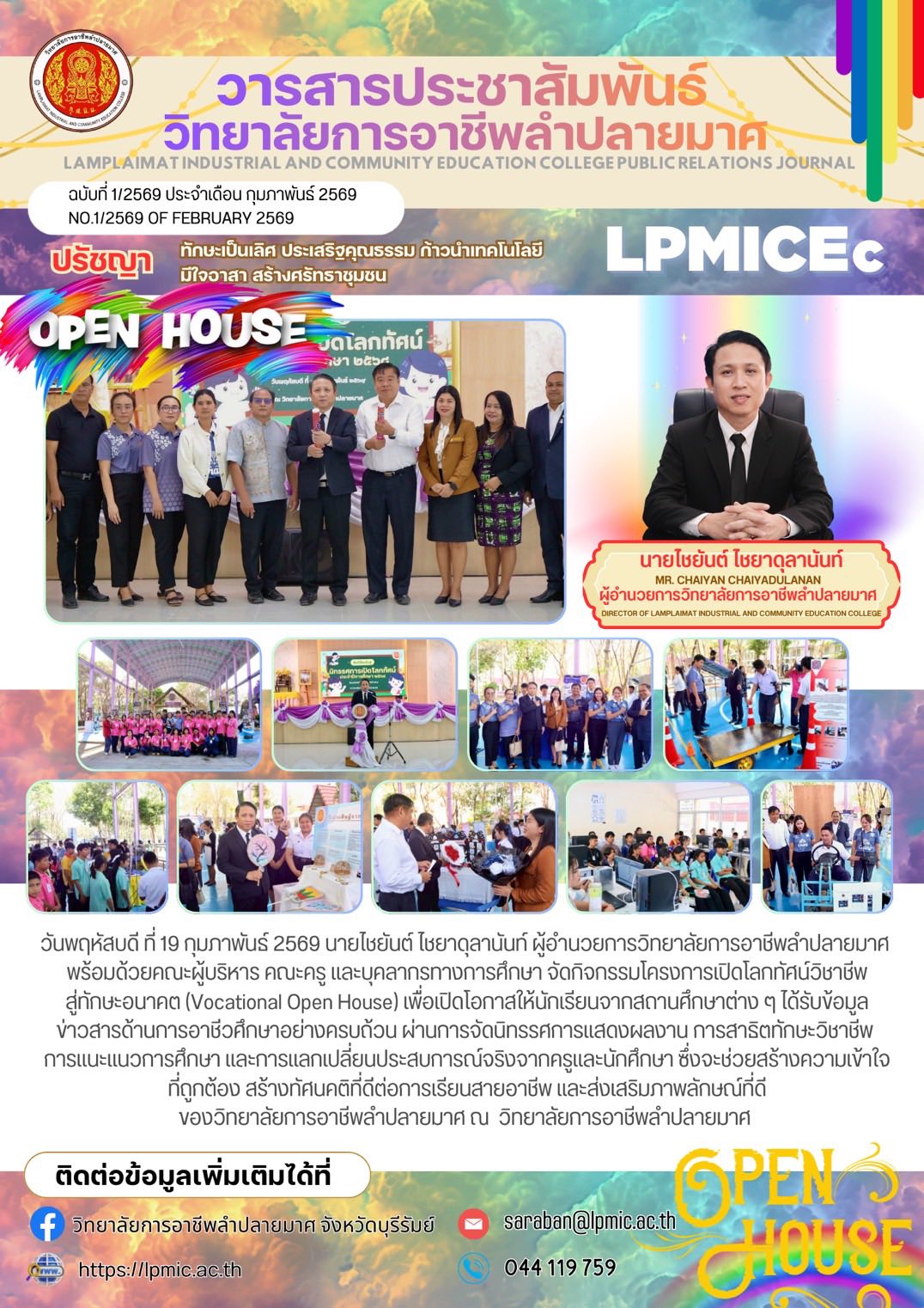 ข่าวกิจกรรมโรงเรียนข่าวประชาสัมพันธ์ข่าวสำหรับนักเรียน OPEN HOUSE วิทยาลัยการอาชีพลำปลายมา 20 กุมภาพันธ์ 2026 lpmic